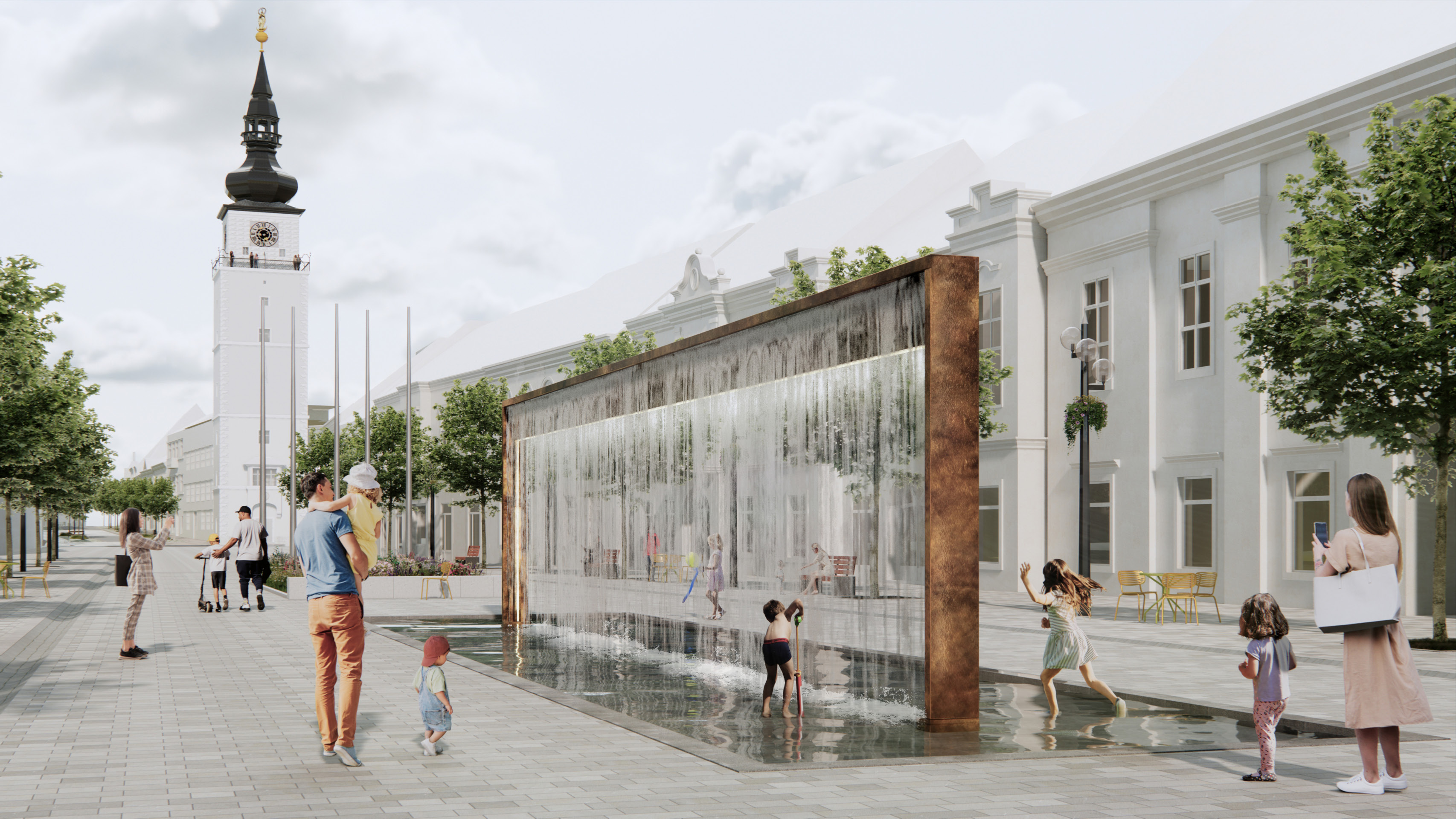 Súťažné návrhy novej fontány na pešej zóne v Trnave.