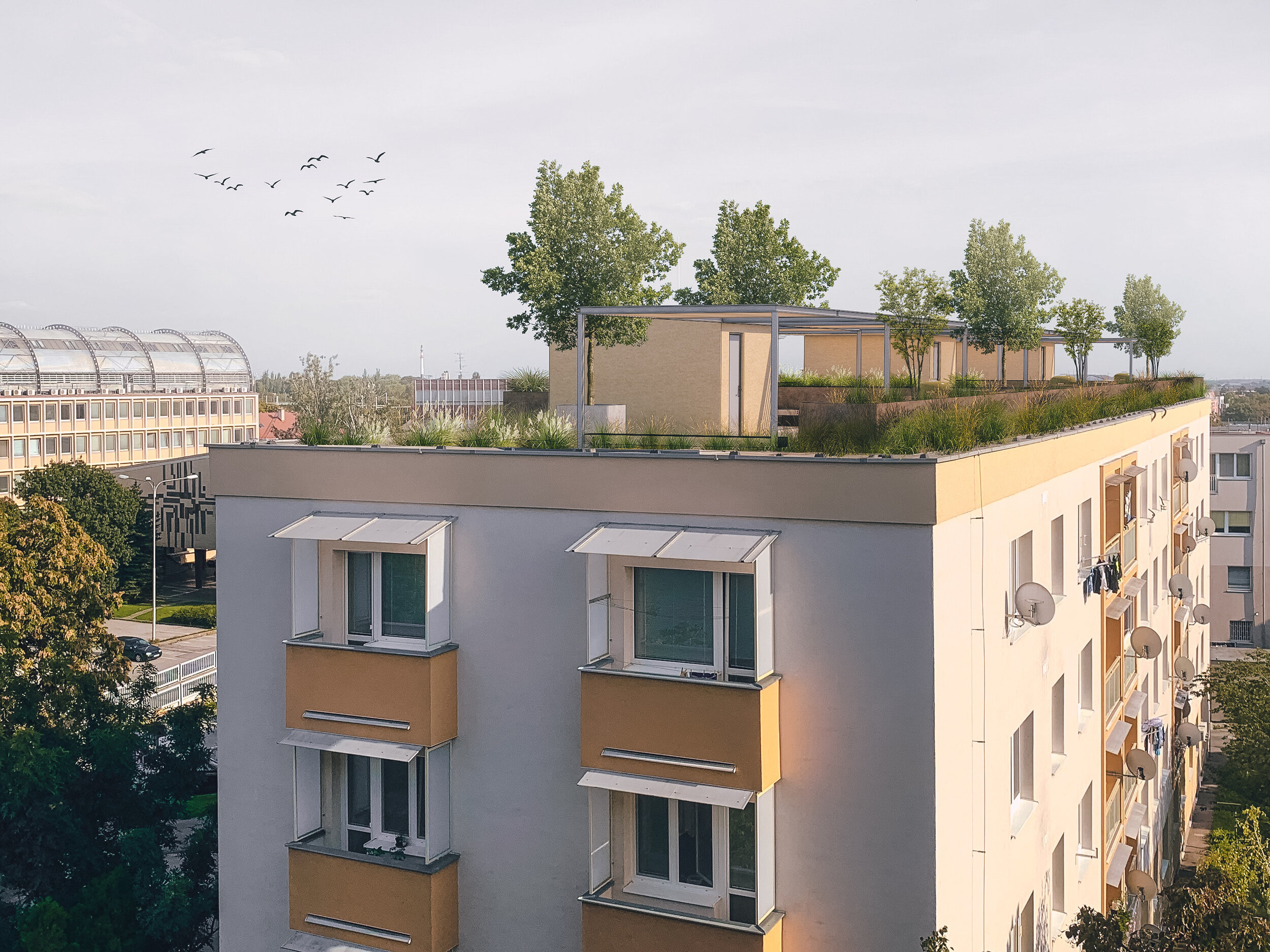 Zeleň v mestách, ekológia, zadržiavanie dažďovej vody, zveľaďovanie starších bytových domov a všeobecná otázka budúcnosti sídlisk. Na tieto a mnohé iné otázky sa snaží odpovedať ideový návrh terasy, resp. záhrady, na streche jedného z bytových domov v Trnave.