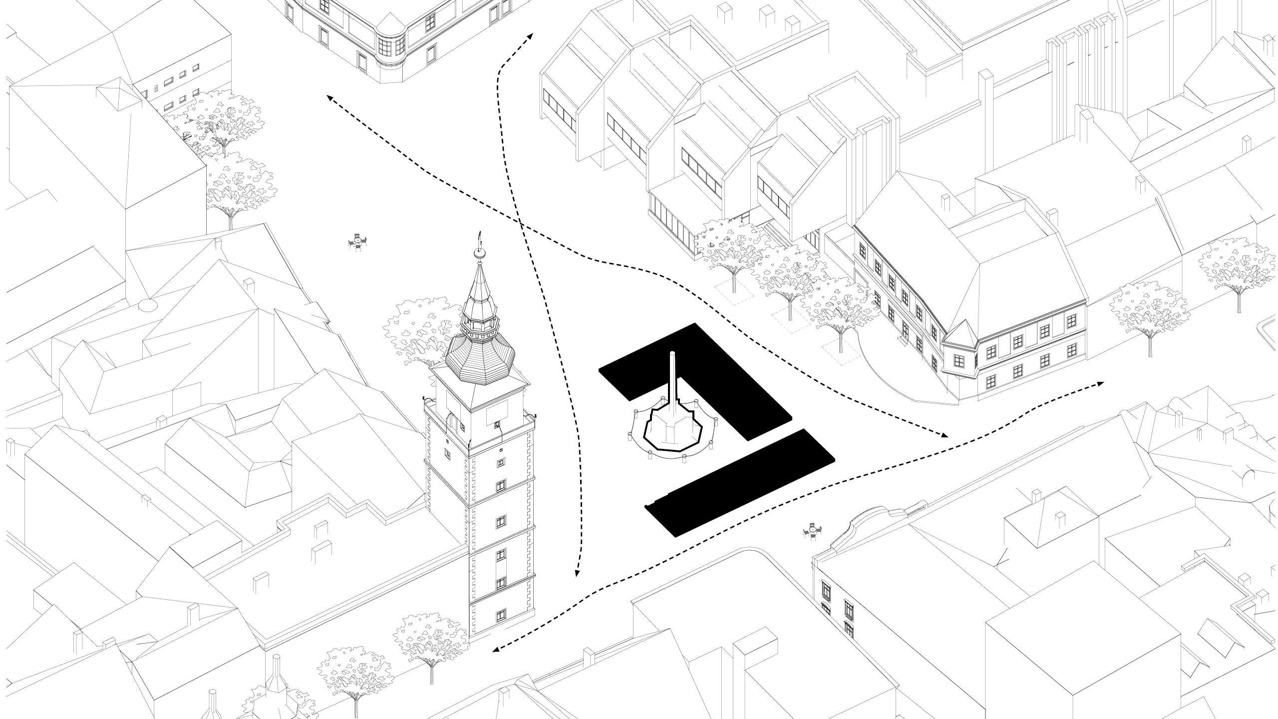 Okolo sochy Svätej Trojice sú navrhnuté tri tematické bloky.