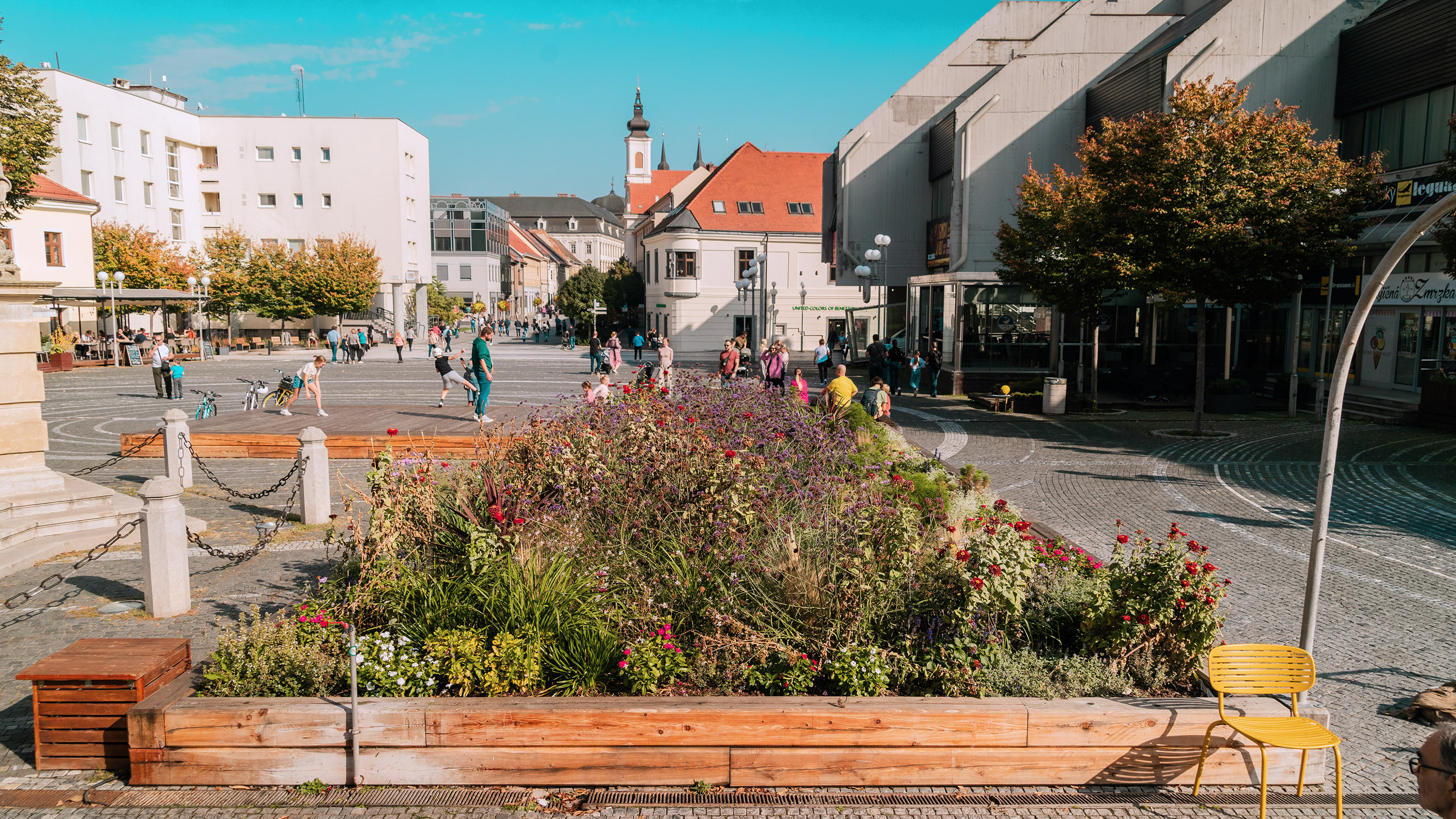 V návrhu maximalizujeme pobytové a sedacie plochy. Dotvárame námestie na živé, zážitkové miesto, kde budú obyvatelia a návštevníci radi tráviť dlhší čas.